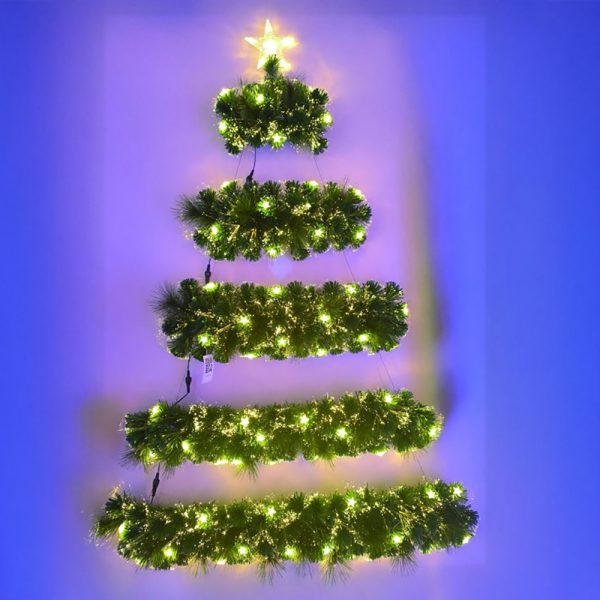 Albero di Natale luminoso da parete 150cm con festone e luce decorativa in fibra ottica Bianco Caldo Wisdom