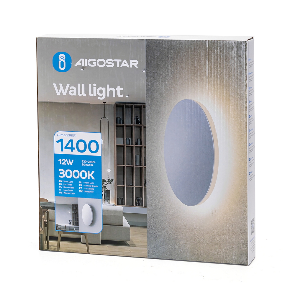 Applique Led da parete Plat 12W rotondo Bianco IP20 Bianco caldo 3000K Aigostar