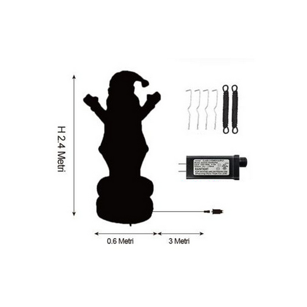 Porta la magia del Natale nel tuo giardino con questo Babbo Natale gonfiabile di ben 2,4 metri di altezza! Imponente e festoso, sarà il protagonista indiscusso delle tue decorazioni natalizie. Grazie alla sua base girevole a 360 gradi, Babbo Natale cattura l’attenzione con un movimento continuo che aggiunge un tocco dinamico e incantevole alla tua scenografia. La sua larghezza di 60 centimetri lo rende perfetto anche per spazi più contenuti, senza rinunciare alla spettacolarità.