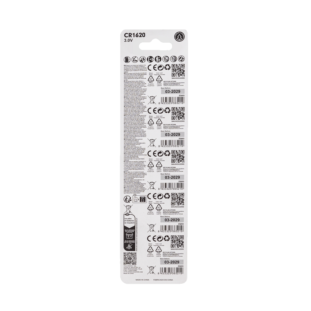 Progettate per durare nel tempo, sono leggere, compatte e resistenti alle perdite, ideali per un’ampia gamma di dispositivi. Le batterie CR1620 sono inoltre riconosciute anche nei modelli equivalenti ECR1620 e DL1620, assicurando piena compatibilità con diversi marchi e applicazioni.