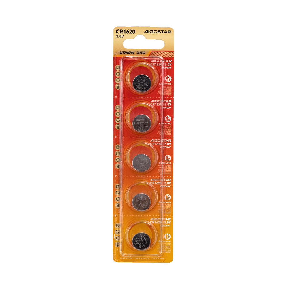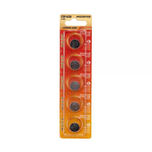Batteria bottone Aigostar 3V CR1620 Litio confezione da 5 pile