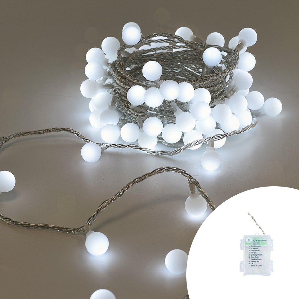 Con una lunghezza totale di 9 metri, questa catena offre ampia versatilità per decorare alberi, cornici, mensole o tavole festive. Il cavo trasparente la rende quasi invisibile alla vista, lasciando spazio solo alla magia delle luci. Le 60 perle luminose brillano con eleganza e delicatezza, creando un effetto visivo suggestivo e armonioso.