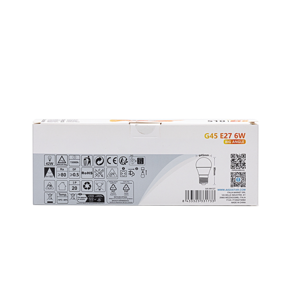 Grazie alla loro potenza di 6W, che corrisponde a 42W delle vecchie lampadine, queste LED assicurano un’illuminazione efficiente e a basso consumo. Un piccolo gesto quotidiano che fa la differenza, sia per il risparmio energetico che per la sostenibilità.