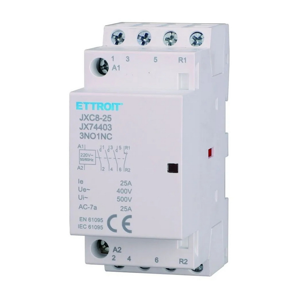Costruito seguendo le normative internazionali IEC/EN 61095 e IEC 60947-4-1, questo contattore garantisce elevata affidabilità e lunga durata anche in applicazioni con cicli frequenti di commutazione. Il montaggio su guida DIN 35mm ne facilita l’installazione in qualsiasi quadro elettrico, mentre il design modulare compatto permette di ottimizzare lo spazio disponibile.