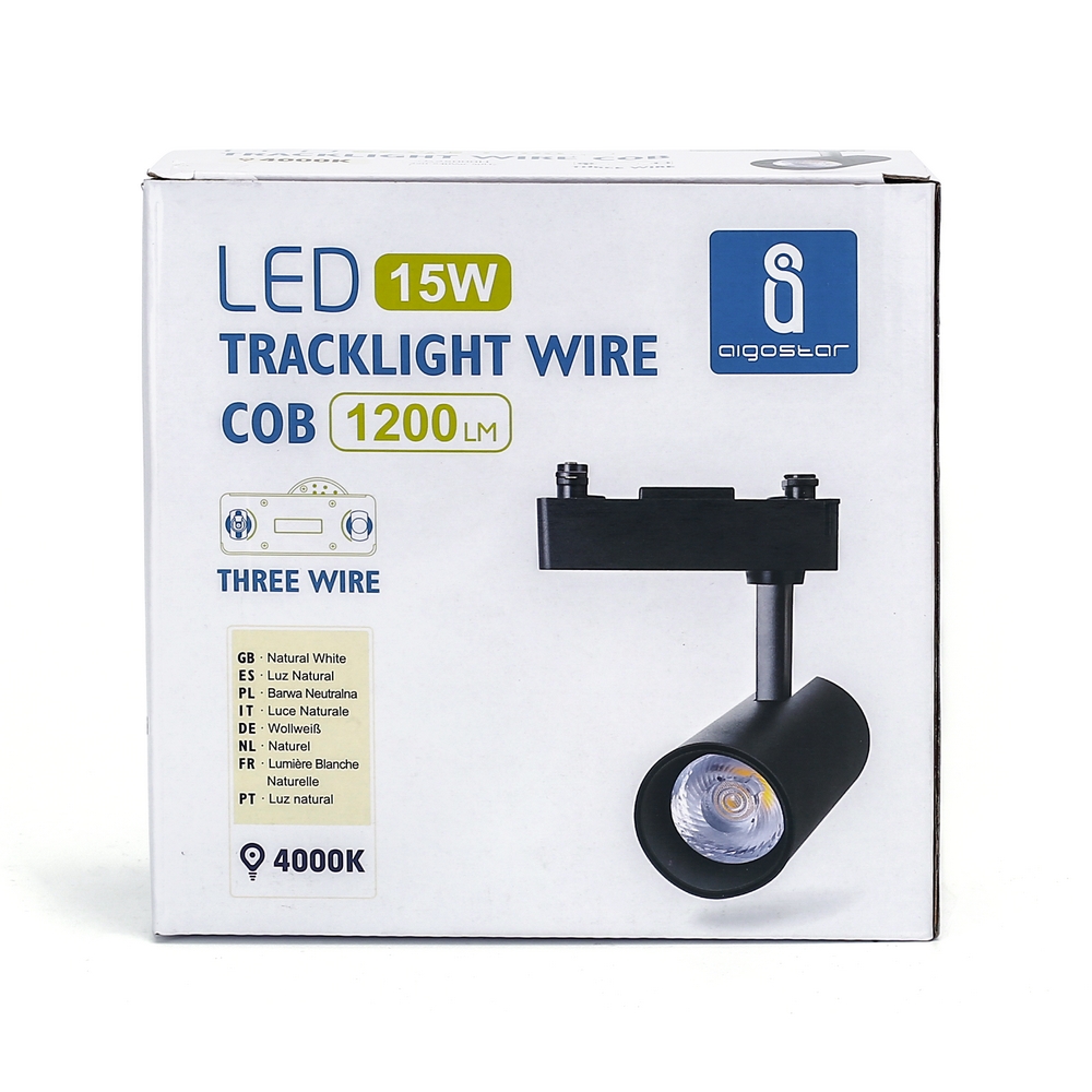 Faretto Led da binario 15W nero orientabile monofase Bianco neutro 4000K Aigostar