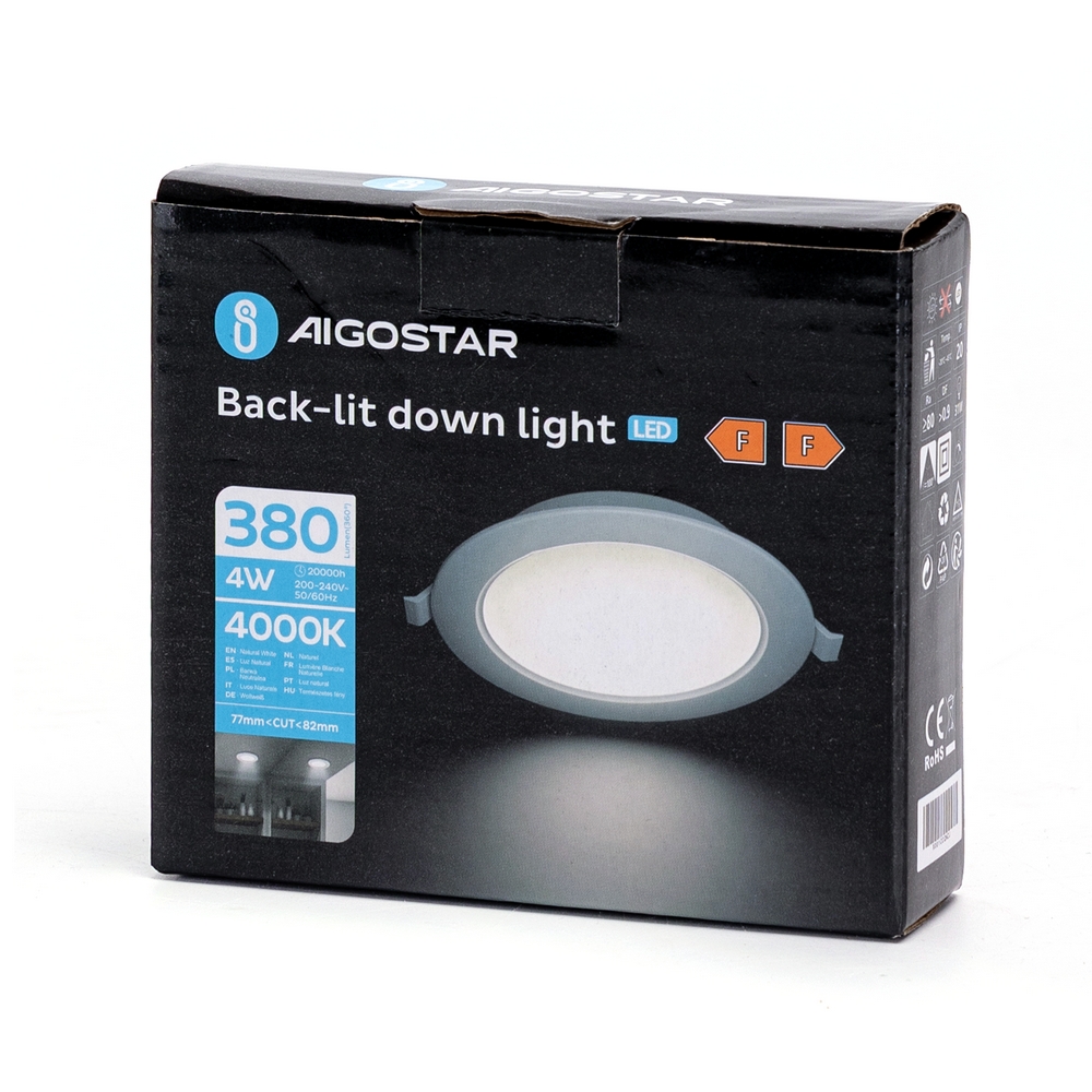 Faretto Led da incasso 4W Rotondo Cornice bianca Apertura 100 gradi Bianco neutro 4000K Aigostar