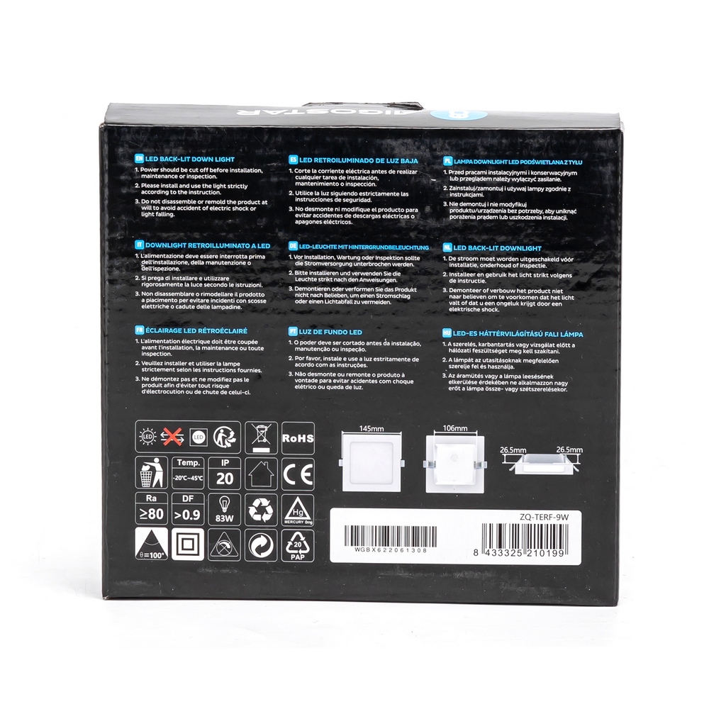 È un classico faretto da incasso con forma quadrata che, grazie alla sua potenza da 9 Watt, si rivela la miglior soluzione per contenere i consumi e non intaccare le prestazioni.