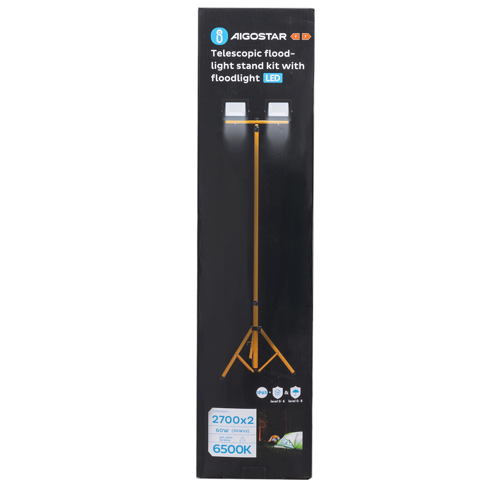 Faro Led da lavoro 2x30W Nero IP65 Bianco freddo 6500K con supporto treppiede 160cm Aigostar