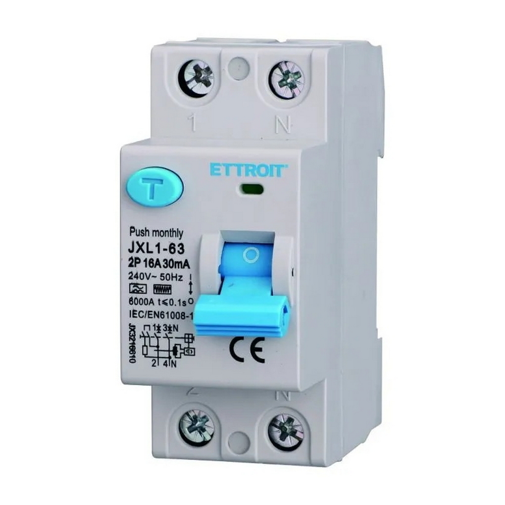 Interruttore differenziale puro Salvavita modulare 2P 16A 30mA 6KA 220V curva F Ettroit