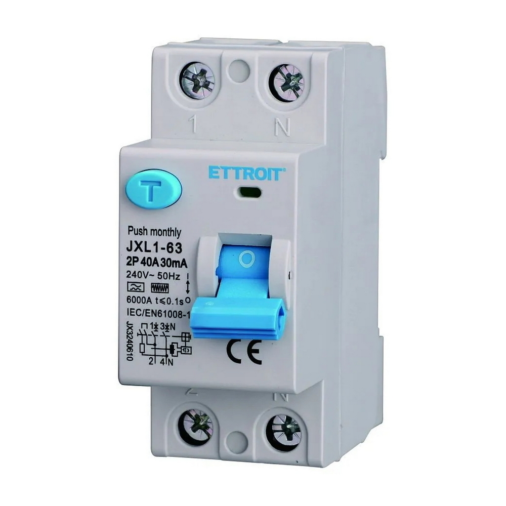 Interruttore differenziale puro Salvavita modulare 2P 40A 30mA 6KA 220V curva F Ettroit