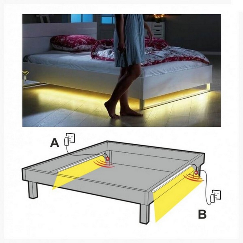 Kit Striscia Led sottoletto 12V 3,6W SMD 2835 1,2 metri IP20 con sensore di movimento Bianco Caldo 3000K M LEDME