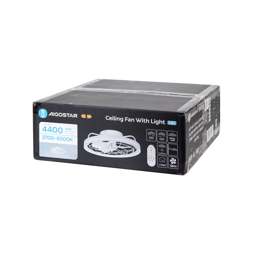 Non è solo l’illuminazione a rendere speciale questo lampadario ventilatore. Progettato per coprire un‘area fino a 13 metri quadrati, il ventilatore è perfetto per rinfrescare le tue stanze nelle calde giornate estive. Con 5 pale efficienti e un livello di rumorosità di soli 50dB, garantisce un funzionamento silenzioso, permettendoti di godere di una brezza fresca senza fastidiosi rumori di sottofondo. Sia che tu lo installi nel soggiorno, nella camera da letto o nell’ufficio, questo ventilatore migliorerà il tuo comfort quotidiano.