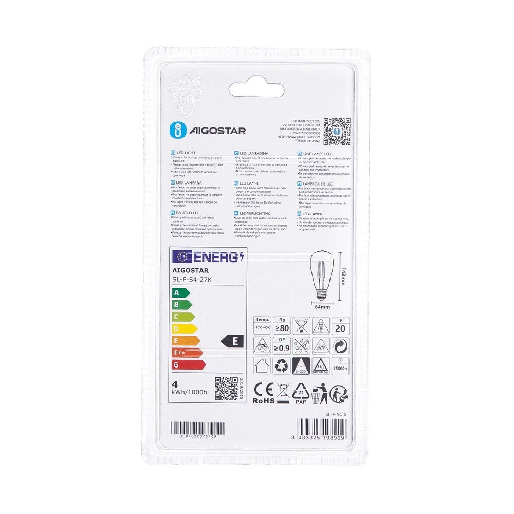 Lampadina Led a Filamento E27 ST64 4W Bianco caldo 2700K Aigostar
