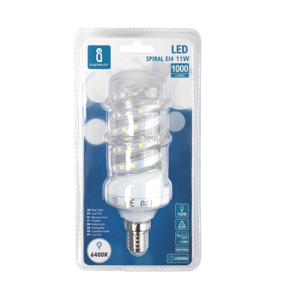 La lampadina a Led con attacco E14 comunemente detto “attacco piccolo” a tubo a spirale 11W, corrispondente ad una tradizionale lampadina da 75W, rientra nella categoria di led che ha un maggiore potenza e che offre il massimo delle prestazioni a fronte di un consumo irrisorio se paragonato con le tradizionali lampadine a incandescenza.