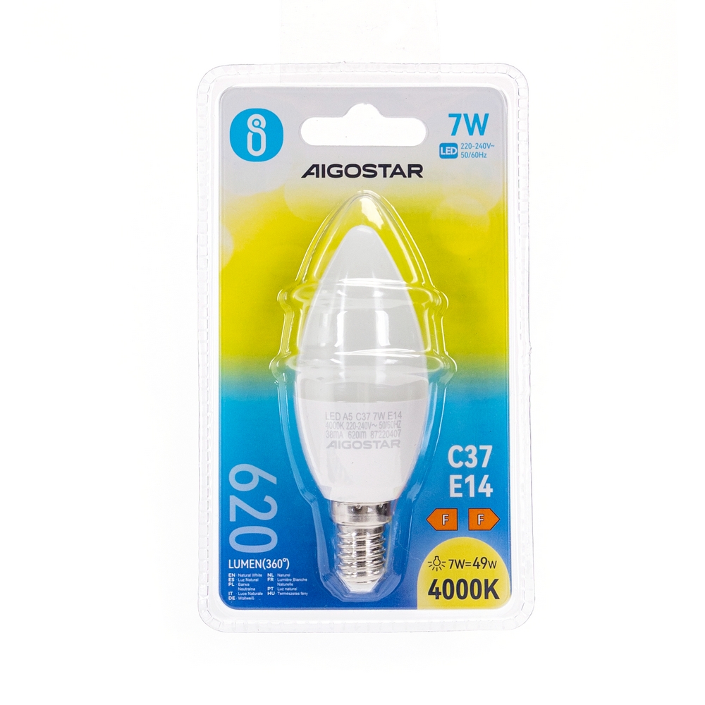 La lampadina a Led con attacco E14, comunemente detto “attacco piccolo”, con forma C35 a candela 7W, corrispondente ad una tradizionale lampadina da 45W, è il bilanciamento perfetto tra prestazioni e impatto energetico.