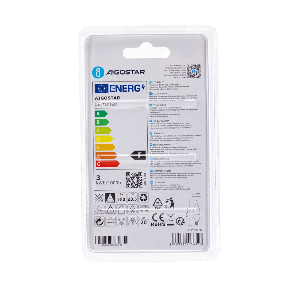 La lampadina a Led con attacco E14, comunemente detto “attacco piccolo”, con forma CL37 a colpo di vento 3W, corrispondente ad una tradizionale lampadina da 25W, è la miglior soluzione per contenere i consumi e non intaccare le prestazioni.