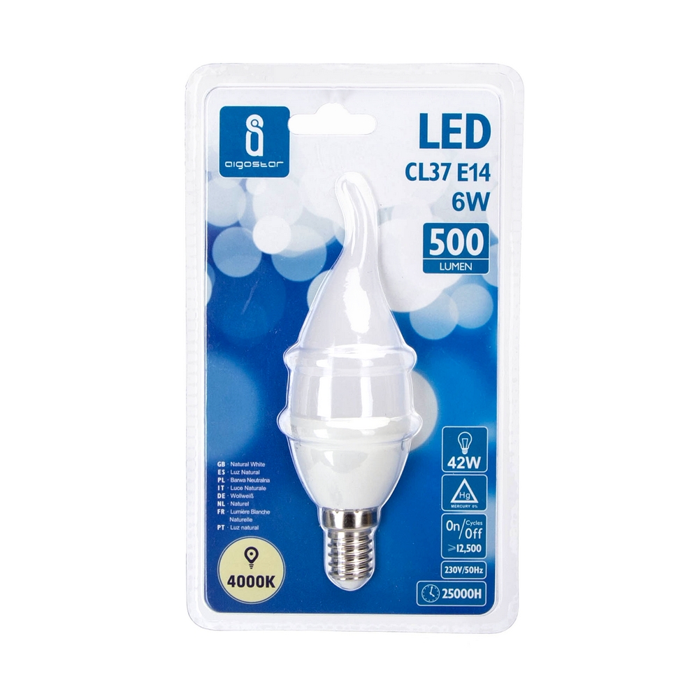 La lampadina a Led con attacco E14, comunemente detto “attacco piccolo”, con forma CL37 a colpo di vento 6W, corrispondente ad una tradizionale lampadina da 42W, è il bilanciamento perfetto tra prestazioni e impatto energetico.