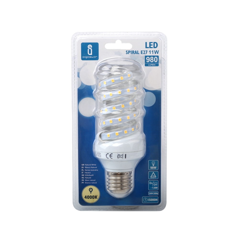 La lampadina a Led con attacco E27 comunemente detto “attacco grande” a tubo a spirale 11W, corrispondente ad una tradizionale lampadina da 70W, è il bilanciamento perfetto tra prestazioni e impatto energetico.