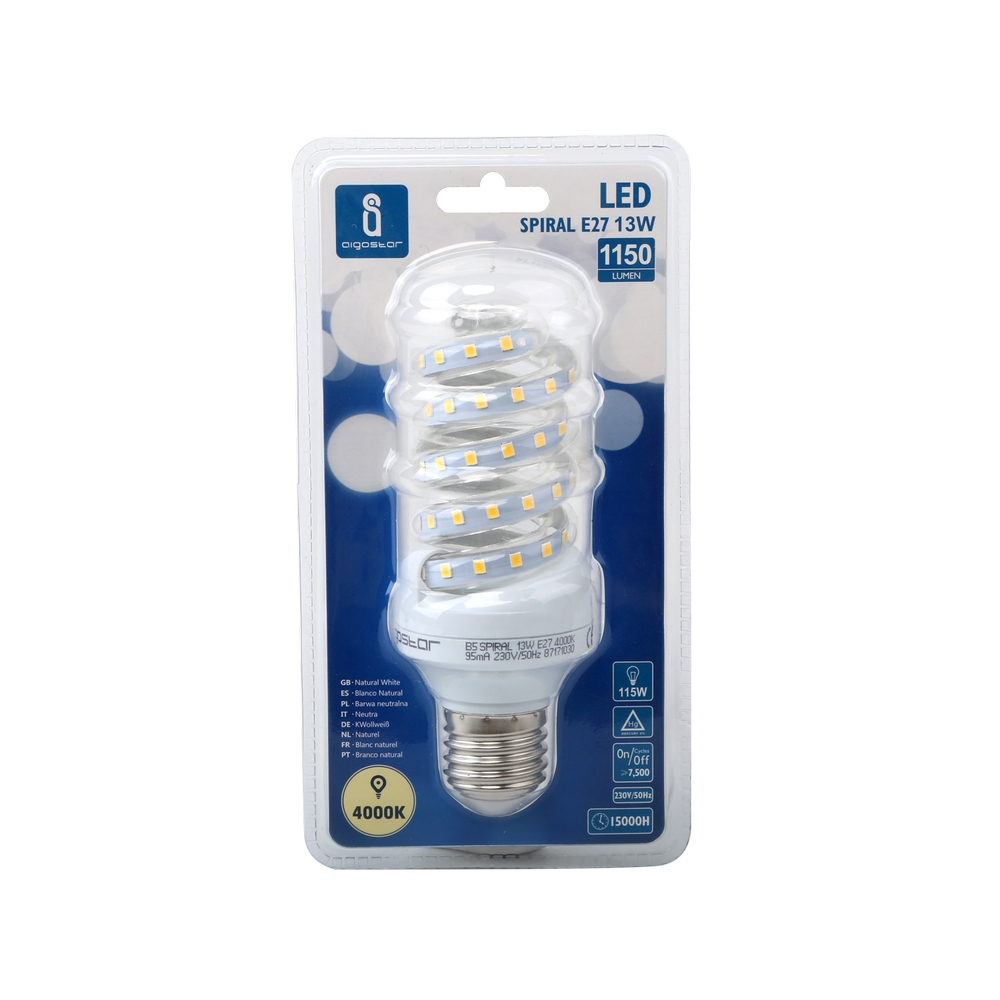 La lampadina a Led con attacco E27 comunemente detto “attacco grande” a tubo a spirale 13W, corrispondente ad una tradizionale lampadina da 80W, è il bilanciamento perfetto tra prestazioni e impatto energetico.