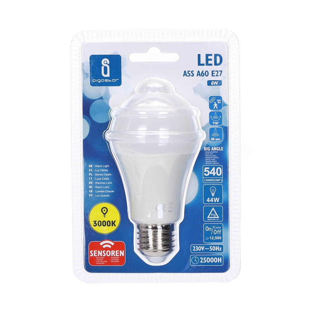 La lampadina a Led con attacco E27, comunemente detto “attacco grande”, con forma A60 a bulbo da 6W, corrispondente ad una tradizionale lampadina da 44W, è la miglior soluzione per contenere i consumi e non intaccare le prestazioni.