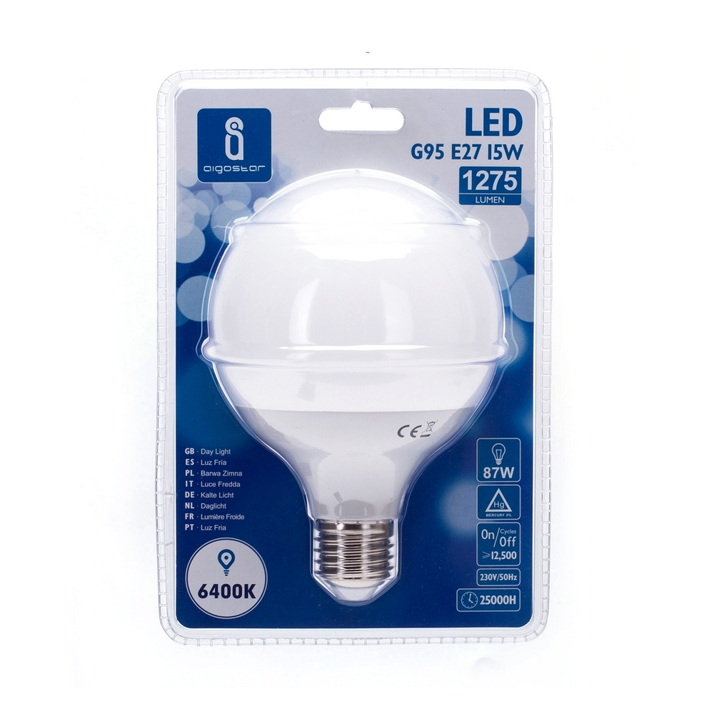 Lampadina Led E27 G95 a globo 15W Bianco freddo 6400K Aigostar