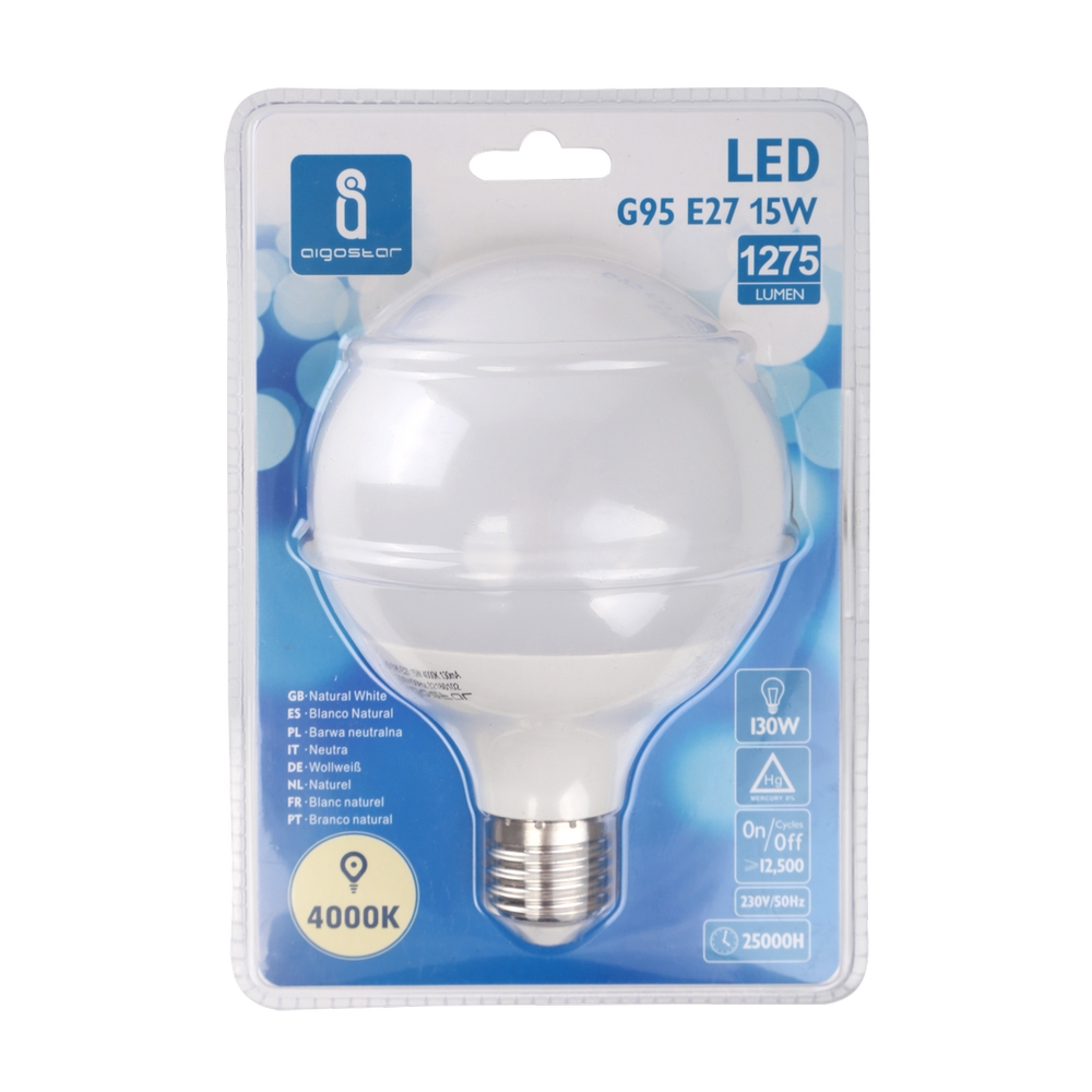 Lampadina Led E27 G95 a globo 15W Bianco neutro 4000K Aigostar