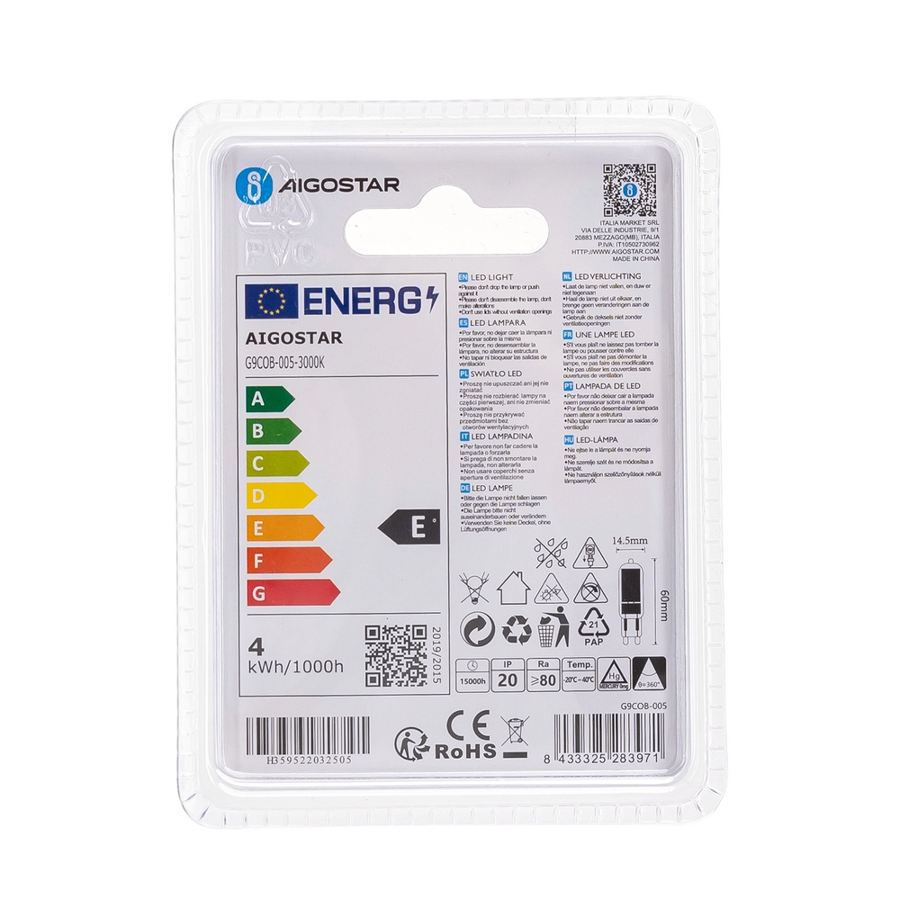 La lampadina a Led con attacco G9 a Capsula da 4W COB, corrispondente ad una tradizionale lampadina da 39W, è il bilanciamento perfetto tra prestazioni e impatto energetico.