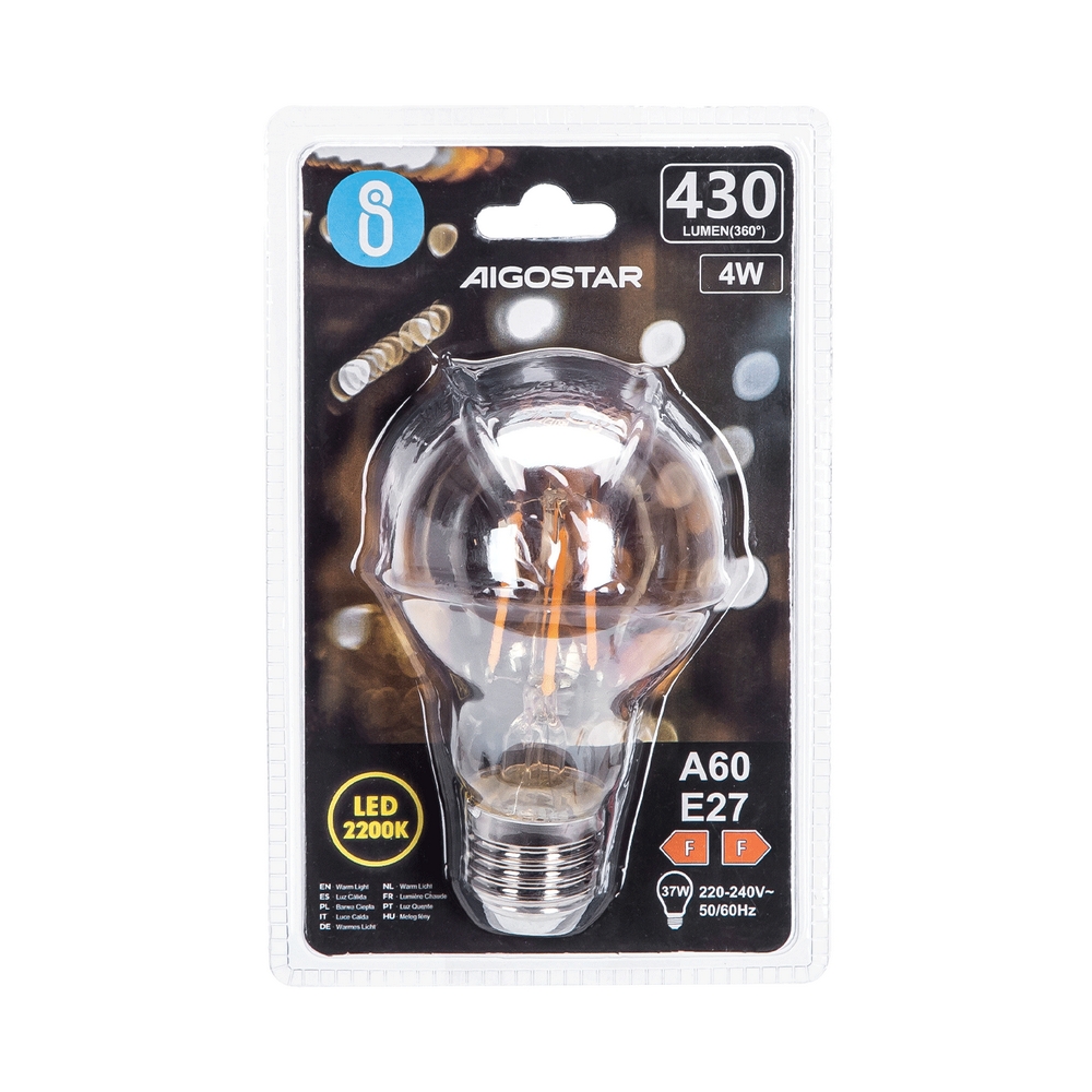 La lampadina a Led Vintage a Filamento con attacco E27, comunemente detto “attacco grande”, con forma A60 a bulbo da 4W, corrispondente ad una tradizionale lampadina da 37W, è la miglior soluzione per contenere i consui e non intaccare le prestazioni.