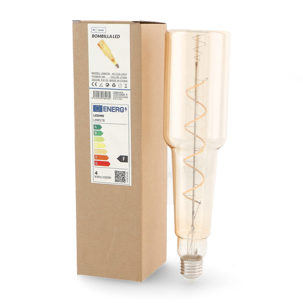La lampadina Led a forma di bottiglia offre non solo un’estetica accattivante, ma anche prestazioni di alto livello. Dotata di un attacco E27 standard e una potenza di 4W, garantisce un’illuminazione morbida e avvolgente con una temperatura colore bianco caldo da 2300K. I filamenti visibili ricreano l’atmosfera romantica delle lampadine tradizionali, mentre la tecnologia Led assicura un’elevata efficienza energetica e una lunga durata nel tempo.