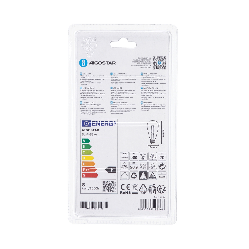 La lampadina a Led Vintage a Filamento con attacco E27, comunemente detto “attacco grande”, con forma ST64 8W, corrispondente ad una tradizionale lampadina da 60W, è il bilanciamento perfetto tra prestazioni e impatto energetico.