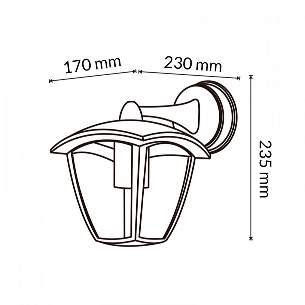 Questa lanterna da parete di colore nero è la soluzione ideale per valorizzare con eleganza gli spazi esterni e interni della casa. Il design classico e raffinato si adatta facilmente a qualsiasi stile architettonico, dal moderno al tradizionale, creando un punto luce decorativo capace di impreziosire ingressi, terrazzi, balconi e porticati.