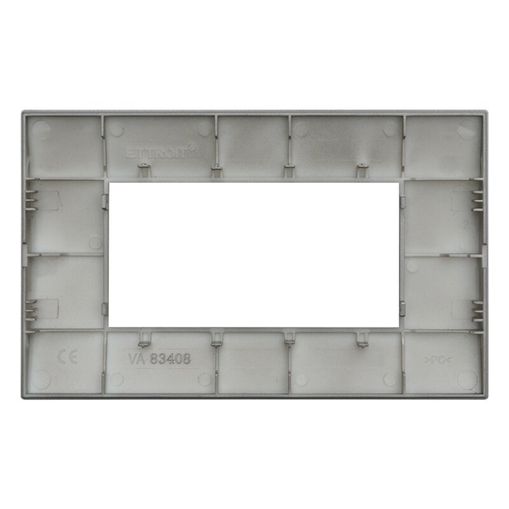 Realizzata in plastica di alta qualità, questa placca 4 moduli per scatola 504 della serie Venus della marca Ettroit unisce funzionalità ed estetica in un design moderno e raffinato. Il colore titanio si adatta perfettamente a qualsiasi tipo di ambiente, offrendo un tocco pulito e luminoso alle pareti di casa o dell’ufficio.