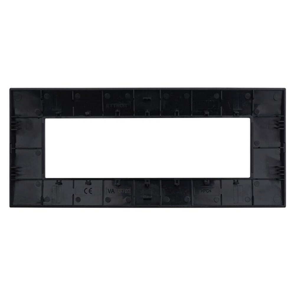 Realizzata in plastica di alta qualità, questa placca 7 moduli per scatola 507 della serie Venus della marca Ettroit unisce funzionalità ed estetica in un design moderno e raffinato. Il colore nero si adatta perfettamente a qualsiasi tipo di ambiente, offrendo un tocco pulito e luminoso alle pareti di casa o dell’ufficio.