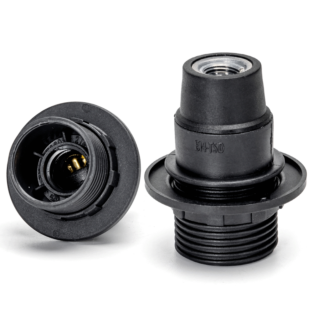 Portalampada per attacco E14 di colore nero, realizzato in plastica resistente e di alta qualità, ideale per l’installazione di lampadine con piccolo attacco. Il suo design compatto e pulito si adatta facilmente a diversi tipi di lampade e punti luce, garantendo sempre sicurezza e funzionalità.