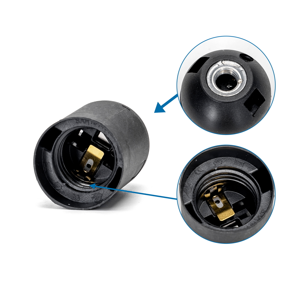 La morsettiera a vite autobloccante consente un collegamento dei cavi rapido e sicuro, assicurando una perfetta tenuta e stabilità durante l’utilizzo. La struttura compatta e leggera facilita il montaggio e lo rende idoneo per diversi tipi di lampadine con attacco E27.