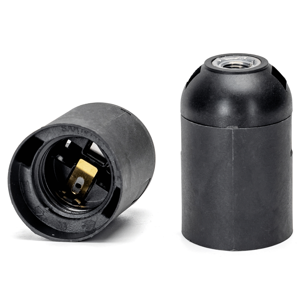 Portalampada per attacco E27 di colore nero, realizzato in plastica resistente e di alta qualità, ideale per garantire sicurezza, affidabilità e durata nel tempo. Il suo design liscio e moderno lo rende perfetto per installazioni a vista, particolarmente adatto per l’illuminazione a sospensione in ambienti dallo stile contemporaneo o industriale.