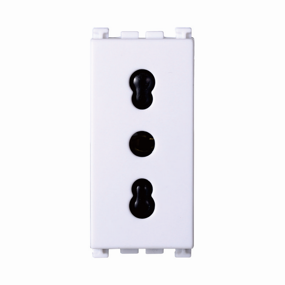La presa bipasso bivalente 1 modulo ad innesto 16A 2P+E P17/11 tipo italiano, di colore nero, della serie venus della marca Ettroit, è compatibile con la serie civile Vimar Arké.