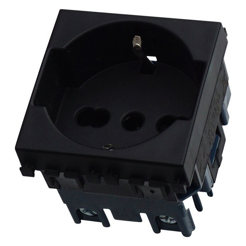 La presa schuko 1 modulo ad innesto 16A 2P+E P40 tipo italiano e tedesco, di colore nero, della serie Venus della marca Ettroit, è compatibile con la serie civile Vimar Plana.