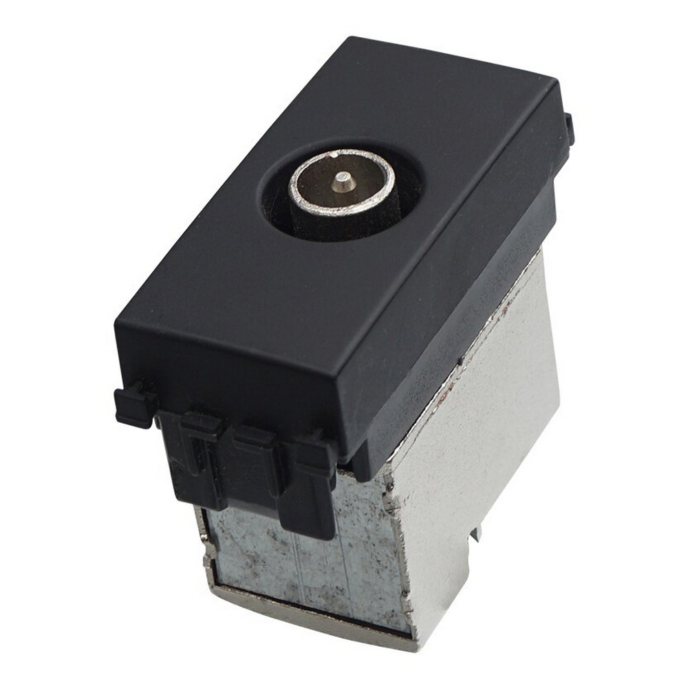 Il connettore coassiale per antenna TV terrestre maschio 1 modulo ad innesto, di colore nero, della serie Venus della marca Ettroit, è compatibile con la serie civile Vimar Arké.