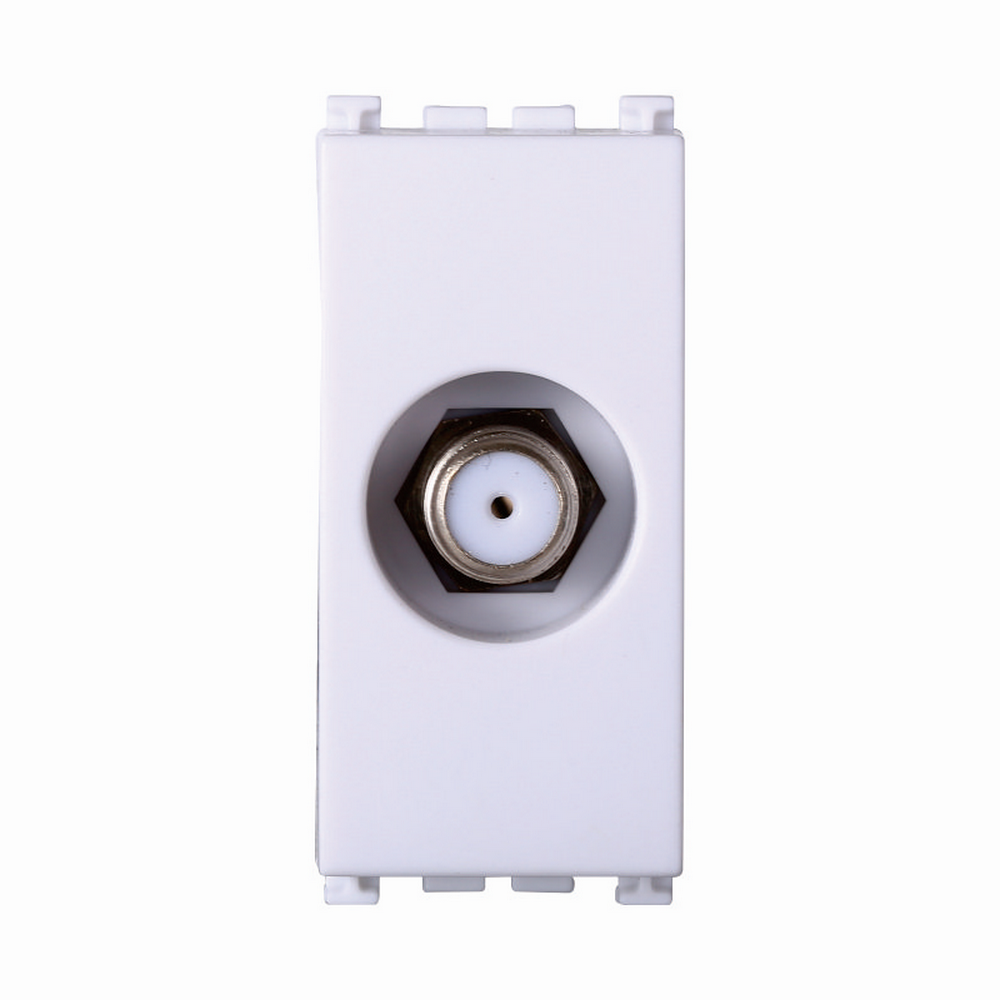 Il connettore per antenna TV SAT femmina 1 modulo ad innesto, di colore bianco, serie Venus della marca Ettroit, è compatibile con la serie civile Vimar Arké.