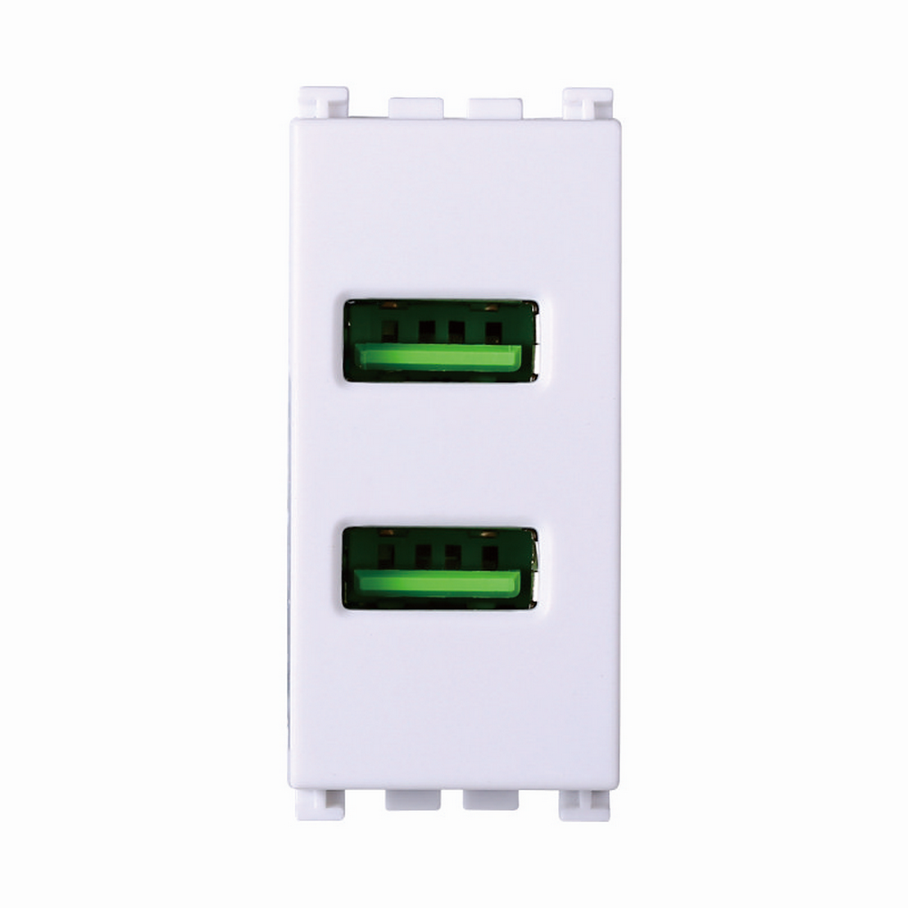 Il connettore USB 1 modulo 2 posti ad innesto 5V 2.4A, di colore nero, della serie Venus della marca Ettroit, è compatibile con la serie civile Vimar Arké.
