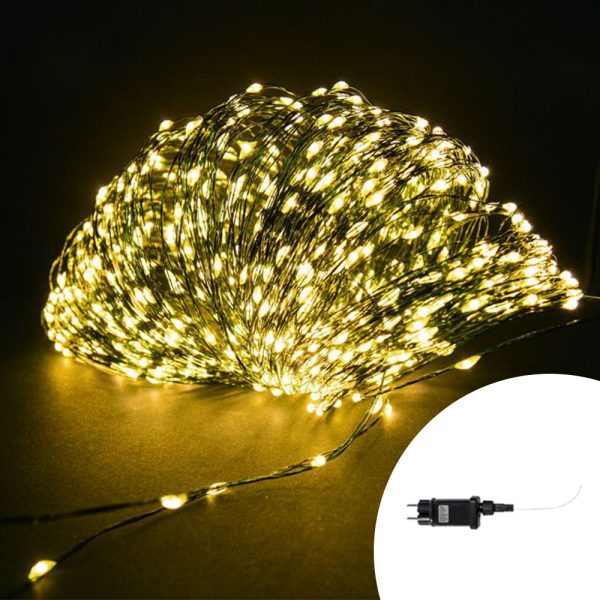 Illumina il tuo Natale con una magia senza fine: questa splendida stringa luminosa in rame da ben 1000 LED ti regalerà un’atmosfera calda, avvolgente e ricca di incanto. Con una lunghezza complessiva di 50 metri, più un pratico cavo di alimentazione da 3 metri, è pensata per dare libero sfogo alla tua creatività, sia negli interni che all’esterno. I LED, nella raffinata tonalità bianco caldo, sono distanziati ogni 5 cm per garantire una diffusione uniforme e delicata della luce, come una pioggia di stelle che accarezza ogni angolo della casa.