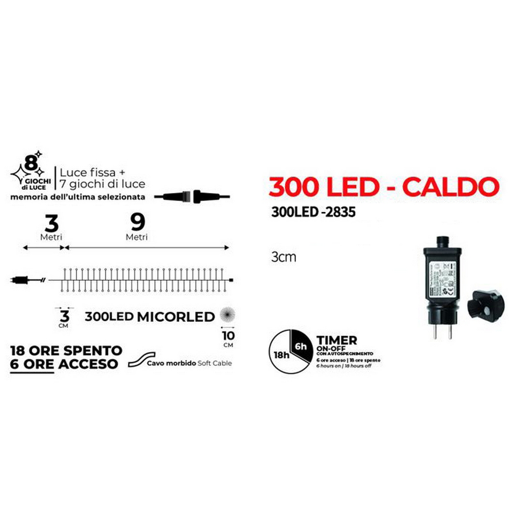 Accendi la magia delle feste con questa straordinaria stringa LED lunga 9 metri, progettata per trasformare ogni ambiente in uno scenario incantato! Con ben 300 LED Mini Millepiedi posizionati a soli 3 cm l’uno dall’altro, questa catena luminosa regala un effetto brillante, uniforme e di grande impatto visivo, perfetto per decorazioni ricche e avvolgenti.