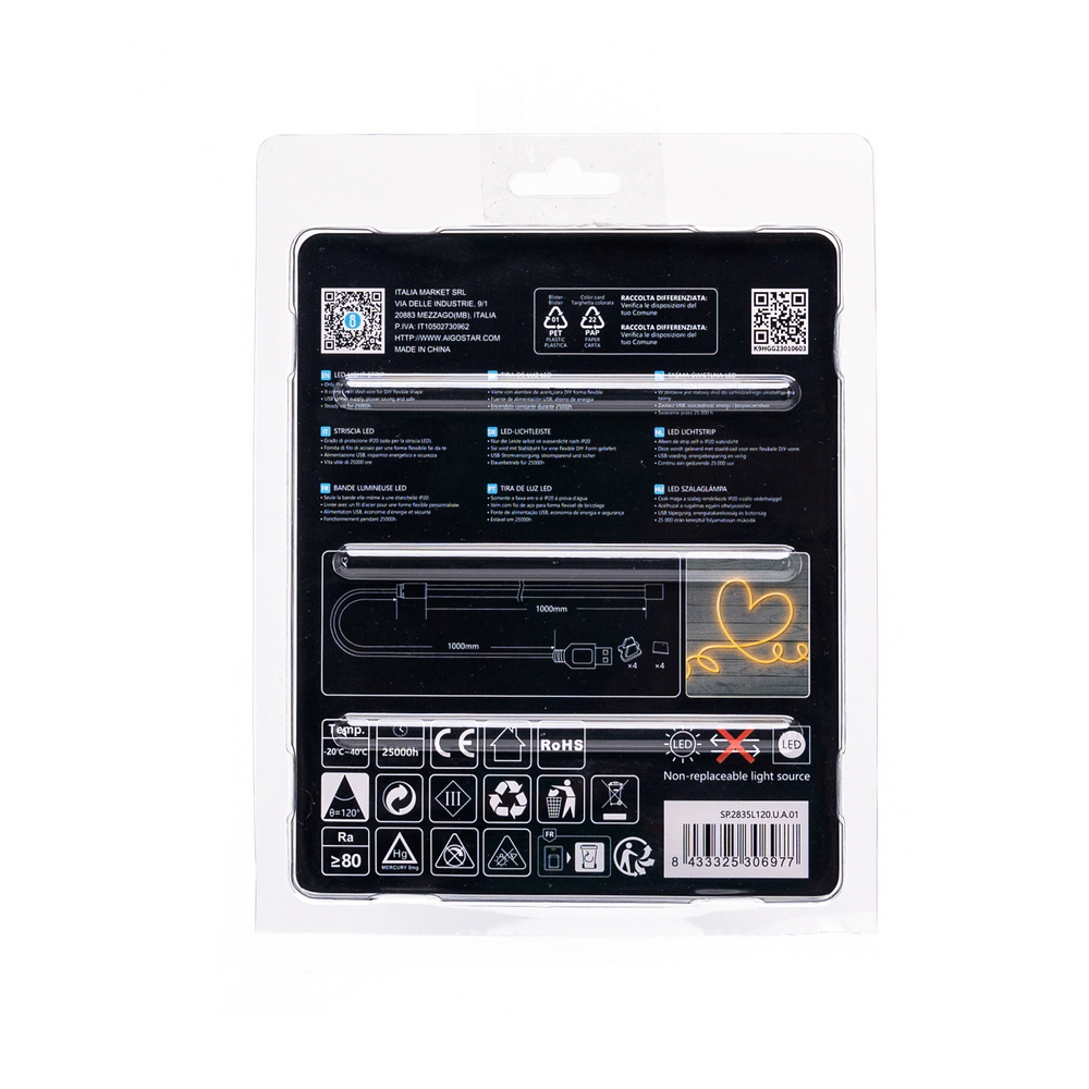 Con un grado di protezione IP65, la striscia LED Neon Flex è resistente all’acqua e alla polvere, garantendo una lunga durata e un funzionamento affidabile anche in ambienti più difficili. Alimentata a 5V, è sicura da usare e compatibile con una vasta gamma di dispositivi e adattatori USB, facilitando ulteriormente la sua integrazione nel tuo setup. Che tu stia cercando di creare un’atmosfera rilassante o di aggiungere un tocco di energia al tuo spazio di gioco, alla tua cameretta o in qualsiasi spazio della tua casa questa striscia LED è la soluzione ideale.