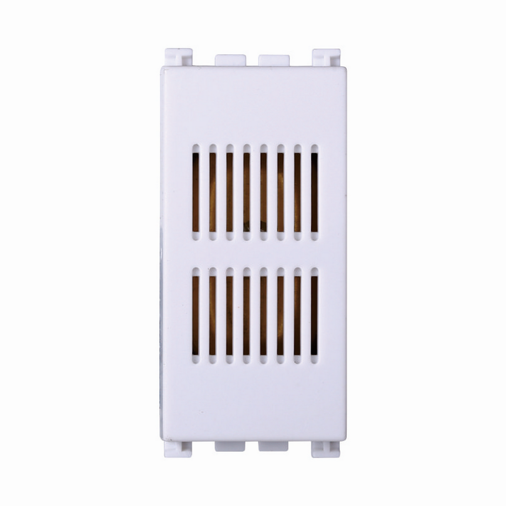 La suoneria per campanello elettrico da 220V, utilizzato per sentire il campanello in ambito domestico, ha 1 modulo ad innesto di colore bianco, serie Venus della marca Ettroit, è compatibile con la serie civile Vimar Arké.
