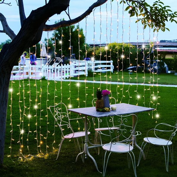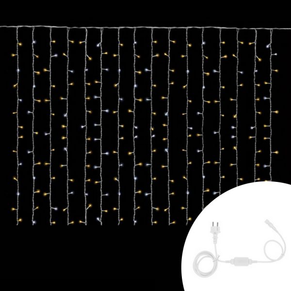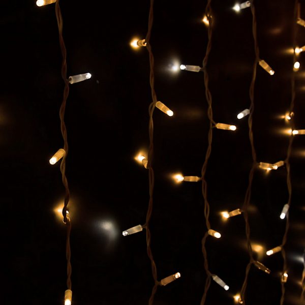 Con i suoi 160 LED totali, questa tenda abbina la delicatezza della luce bianco caldo con l’effetto sorprendente del bianco freddo intermittente. Ben 140 LED emanano una luce calda, avvolgente e continua, perfetta per creare un clima intimo e rilassante, mentre 20 LED bianchi freddi lampeggiano delicatamente, simulando stelle brillanti o piccoli cristalli di ghiaccio danzanti. Un contrasto armonioso che dona profondità e movimento, senza mai risultare invasivo.