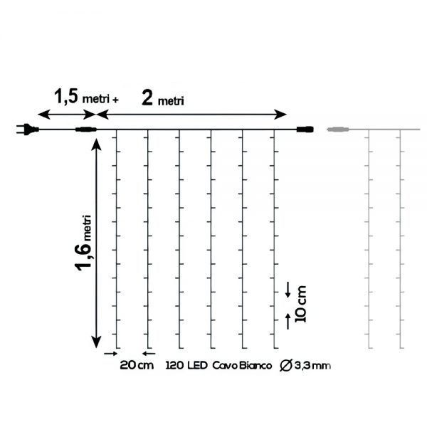Il cavo bianco, lungo 1,5 metri, si integra perfettamente con pareti chiare e superfici luminose, rendendosi quasi invisibile alla luce del giorno e permettendo alle luci di diventare protagoniste quando cala il buio. Questo lo rende ideale non solo per decorare ambienti domestici, ma anche per allestire vetrine, eventi e installazioni natalizie di grande effetto.