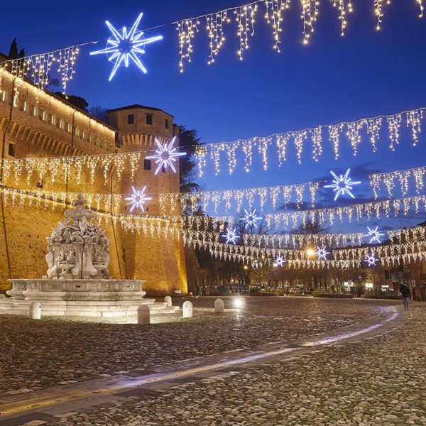 La combinazione dei LED è pensata per creare un effetto visivo armonioso e coinvolgente: 100 LED a luce fissa offrono una base luminosa continua e avvolgente, mentre 20 LED a luce intermittente aggiungono un tocco di magia, simulando il tremolio delle luci natalizie più tradizionali. Le frange, di lunghezze diverse (40, 60 e 100 cm), donano movimento e profondità all’allestimento, per un colpo d’occhio davvero scenografico.