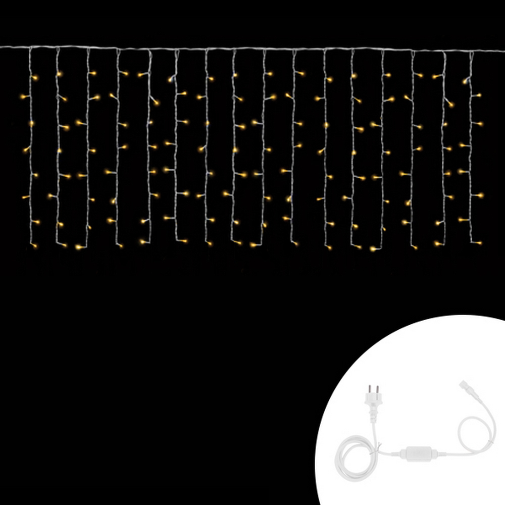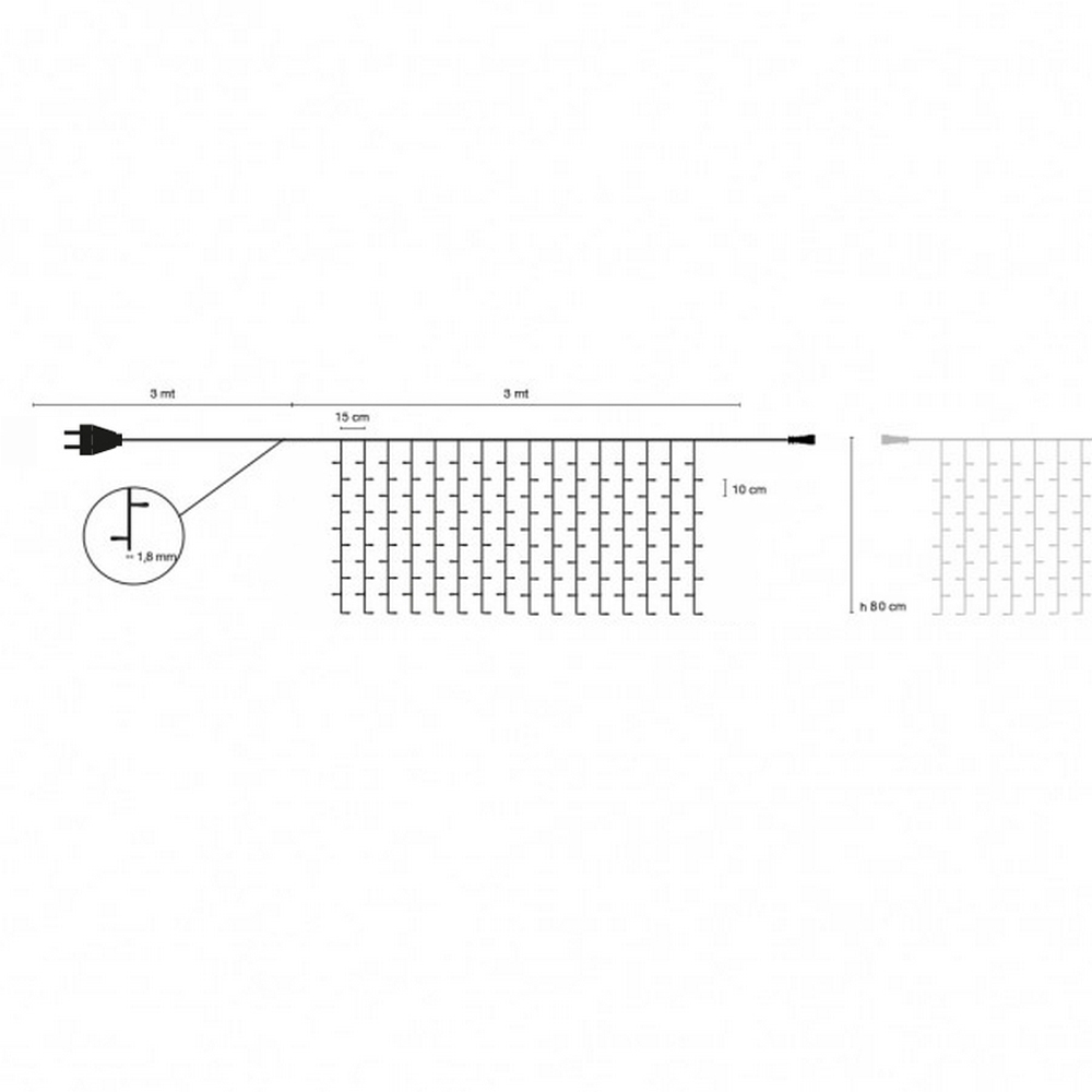 Il cavo bianco si integra con eleganza a ogni tipo di ambientazione, risultando discreto durante il giorno e altamente decorativo al calar della sera. I LED, distribuiti con distanza regolare, assicurano una resa luminosa armoniosa. Il cavo di alimentazione da 1,5 metri facilita il collegamento anche in spazi ampi, mentre la possibilità di collegare fino a 20 tende consente di estendere l’illuminazione fino a 60 metri, adattandosi perfettamente a qualsiasi esigenza di allestimento.