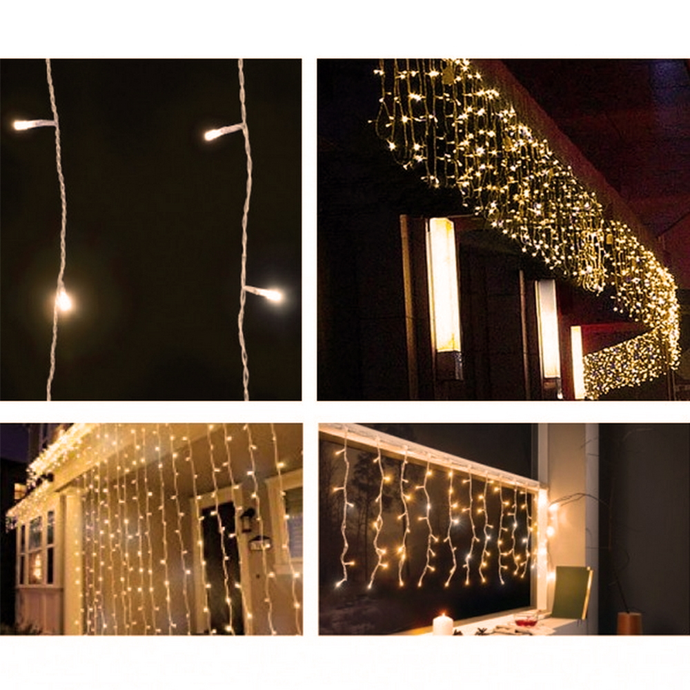 Progettata per l’uso esterno, questa tenda unisce qualità professionale e stile decorativo, offrendo una scenografia luminosa capace di emozionare. L’abbinamento tra il bianco caldo e i lampi di bianco freddo dona vita a una luce sofisticata e festosa, ideale per chi desidera qualcosa di diverso, sorprendente e assolutamente natalizio.
